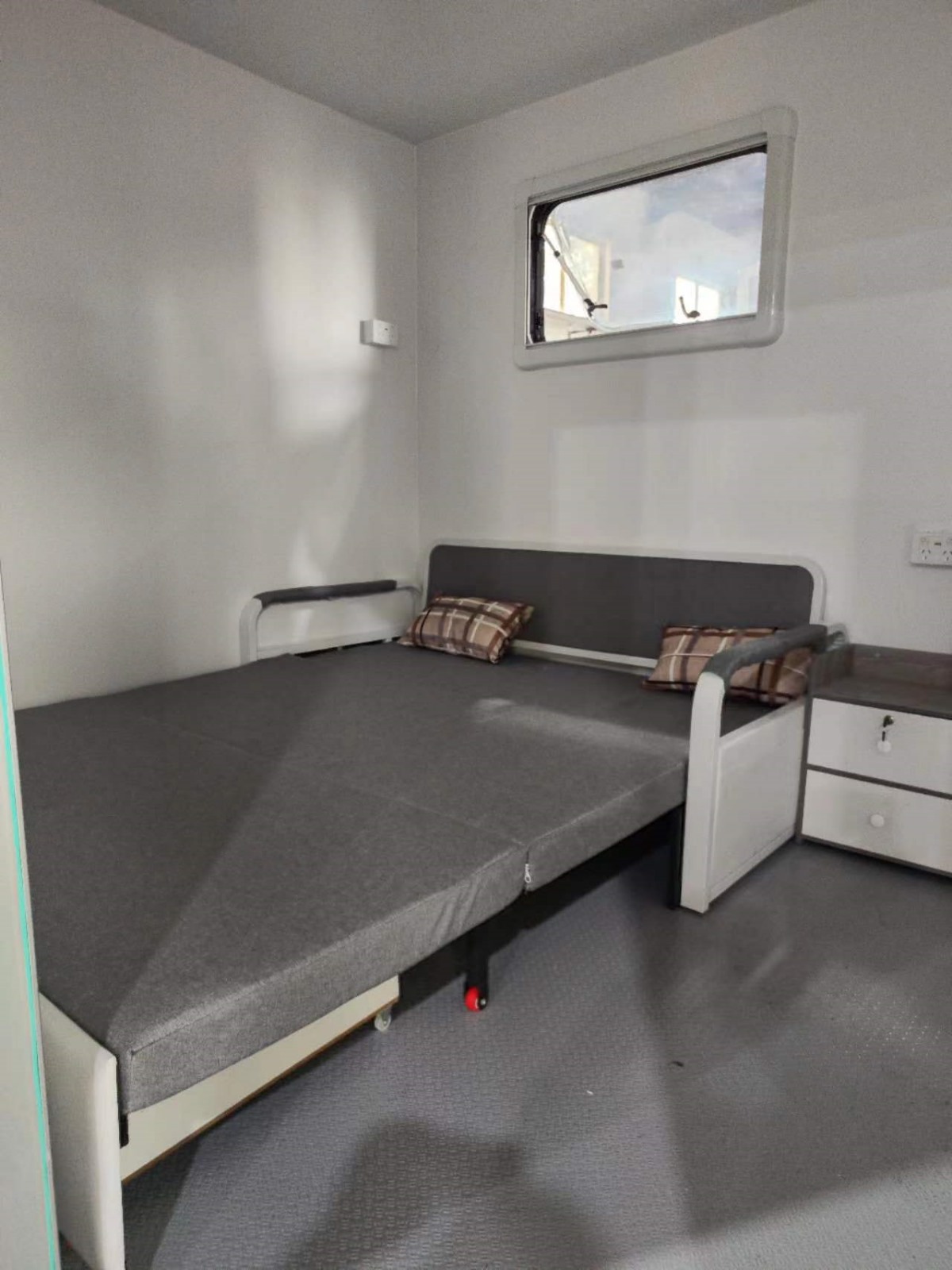 - Sink, Bed, Kitchenette, Toilet, Shower, Storage with Shelves, Heat Pump, Water Pump